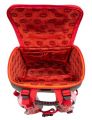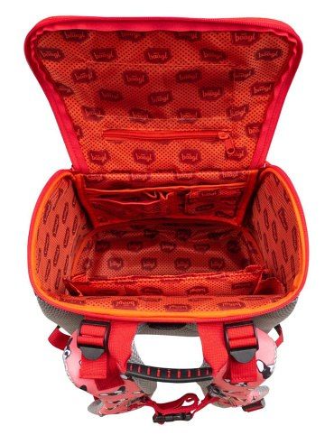 Uvnitř aktovky je průhledná kapsa s rozvrhem a vnitřní organizér umožňující rovnoměrné rozložení hmotnosti, doplněný gumičkou pro fixaci.