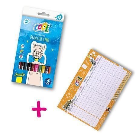 Balíček obsahuje: Barevné pastelky , 12 barev, jumbo, trojhranné + DÁREK: Rozvrh hodin, COOL BY VICTORIA