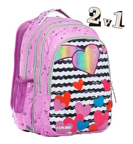 Studentský batoh 2v1 ANNA je dvoudílný a čtyřkomorový. Dvoudílný (2v1) znamená, že zip u druhé komory jde buď úplně rozepnout a tím se rozdělí batoh na dva. Vzniklý větší má zádovou část s polstrováním a ergonomickým systémem pro ochranu páteře. Široké nosné řemeny jsou opatřeny výškově nastavitelným spojovacím prsním páskem. Dno batohu má vnitřní podložku, která zpevní jeho celkovou konstrukci a zajistí stabilitu batohu při jeho postavení na zem. Na předním dílu je pak velká kapsa na zip. Vzniklý menší batoh, je dvoukomorový, v přední komoře s bohatě členěným organizérem našitým na velké vnitřní kapse. Organizér tvoří kapsička na mobil, další kapsička na zip a místo na psací potřeby. V horní části je upevněna karabinka na klíče. Na předním dílu je velká otevřená kapsa. Zádová část je polstrována v celé ploše. Nebo se rozepne jen částečně a slouží jako plnohodnotný čtyřkomorový batoh. Batoh má dvě síťované volně přístupná boční kapsy v horním okraji se všitou gumou. Reflexní prvky jsou jak na předním dílu, tak i na nosných řemenech. Na batoh je poskytována dvouletá záruční lhůta.