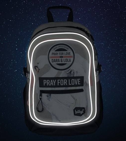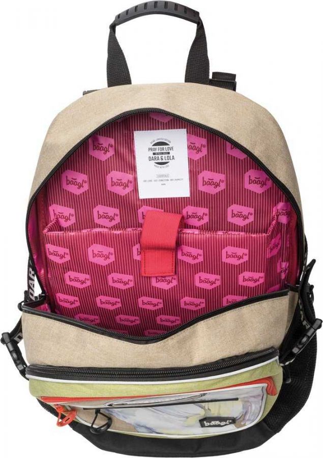 Exkluzivní školní batoh s motivem navrženým Darou Rolins, vhodný pro 3.-4. třídy ZŠ.• Školní ergonomický batoh se třemi samostatně uzavíratelnými odděleními a vnitřním organizérem • Posuvný zádový systém BAAGL ADJUSTABLE SYSTEM umožňuje nastavení optimální polohy popruhů vzhledem k výšce dítěte • Ergonomicky tvarovaná záda, plně nastavitelné ramenní, prsní a boční kompresní popruhy pro optimální přizpůsobení postavě • Velmi nízká hmotnost batohu – 860 g • Objem batohu je 23 l. • Tři samostatně uzavíratelná oddělení a vnitřní organizér • Batoh je vyrobený z pevného voděodolného materiálu • Reflexní prvky pro bezpečnost dítěte