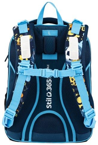Školní batoh VHODNÝ PRO 1 - 4. třídu. Kvalitní, ergonomicky tvarovaný odlehčený školní batoh je vybaven reflexními prvky a anatomicky tvarovanými zády s pevnou konstrukcí. Školní batohy Stil jsou ověřeny odborníky. Parametry školního batohu: Rozměr: výška 40 cm, šířka 30 cm, hloubka 20 cm. Hmotnost: 0,9 kg. Nosnost: 7 kg. Objem: 20 l. Vlastnosti školního batohu: STIL ADJUSTABLE SYSTÉM: nastavitelný systém zad se třemii stupněmi pro optimální usazení batohu na zádech podle výšky a věku dítěte. Batoh, který roste s dítětem. 3D ZÁDOVÝ SYSTÉM: batoh perfektně sedí na zádech. Anatomický zádový panel se přizpůsobí páteři dítěte a systém Air Flow a prodyšné polstrování umožní cirkulaci vzduchu a příjemné nošení. Hrudní pás s kvalitní přezkou zajistí dobré usazení aktovky na zádech dítěte. BEZPEČNOST: bezpečnostní prvky jsou velmi důležité, proto je aktovka vybavena reflexními pásky na všech stranách batohu, které zaručí lepší viditelnost a bezpečnost dítěte ve tmě. VNITŘNÍ USPOŘÁDÁNÍ: Skládá se ze 3 prostorných komor opatřených pevnými zipy a přední kapsy pro uložení drobných předmětů. Pevná kontrukce a voděodolné dno s plastovými nožičkami. AIR FLOW: prodyšné pohodlně tvarované polstrování zadního panelu. Anatomicky tvarované nastavitelné popruhy pro pohodlné nošení. Hrudní pás pro lepší rozložení váhy školního batohu na zádech.
