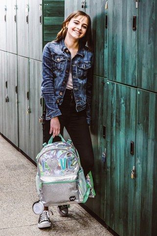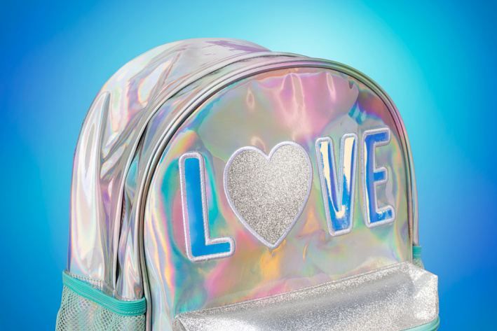 Školní batoh Fun Love vyrobený z holografické fólie, vhodný od 3. třídy 1. stupně ZŠ a také pro 2. stupeň ZŠ. Batoh byl úspěšně testován v ITC Zlín.