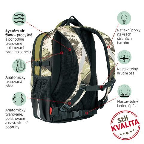 Školní batoh vhodný od 3. třídy Kvalitní, ergonomicky tvarovaný, odlehčený školní batoh s anatomicky tvarovanými zády. Školní batohy Stil jsou certifikovány a ověřeny odborníky.
