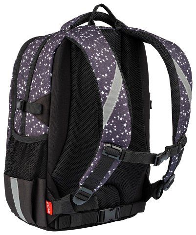 Kvalitní anatomicky tvarovaný batoh vhodný od 3. třídy, systém Air Flow a prodyšné polstrování,2komory na formát A4 a 3 vnitřní přihrádky,kapsa na notebook,vodoodpudivý materiál,zpevněné nepromokavé dno,reflexní prvky,hrudní pás.
