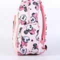 Školní batoh Minnien s pevnými zády a nastavitelnými popruhy, dvěma komorami, přední a boční kapsou na zip. Rozměr 32×42×15 cm. Materiál 100% polyester.