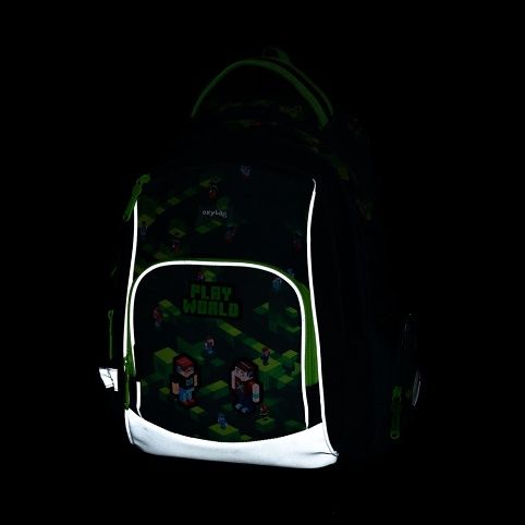 Školní batoh z řady OXY GO na sebe jednoduše strhne pozornost. Designové provedení zaujme každého kluka i holku. Perfektní tvar batohu ukrývá nejen anatomicky tvarovaná a prodyšná záda, ale také možnost nastavit si ramenní popruhy pro lepší pohodlí a komfortnější nošení. Dvě vnitřní kapsy nabízí dostatek prostoru pro učebnice, sešity i věci na volný čas. Pevné dno zabraňuje jak ušpinění zvenku, tak protečení čehokoliv, co se vylije uvnitř. Po stranách najdete dvě větší kapsy. Batoh nabízí velkorysé množství nejrůznějších kapes, ať už velkých nebo i malých. Hledání klíčů v batohu proto nehrozí. Lehký, přitom dostatečně velký pro všechny věci, které chce mít každý školák po ruce. Mysleli jsme také na bezpečnost vašich dětí, proto batohu nechybějí reflexní prvky. Batoh je ideální na první stupeň 1. - 3. třídu pro děti vysoké od 125 cm.