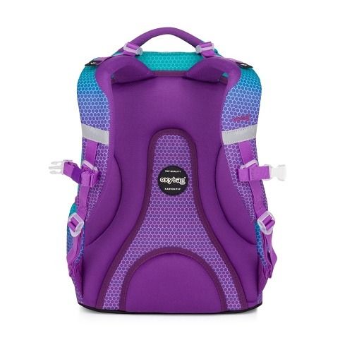 Školní batoh z řady OXY Ombre je ideální pro školáky od 3. třídy. Moderní design ve stylu ombre zaujme na první pohled. Anatomicky tvarovaný zádový panel, polstrované ramenní popruhy a nastavitelný hrudní popruh zajistí záda jako v bavlnce každému školákovi. Pevné dno zabraňuje převrhnutí samostatně stojícího batohu. Batoh disponuje dvěma prostornými kapsami na všechny potřebné školní pomůcky. V bočních postranních kapsách na gumu je prostor pro láhev na pití, která je snadno dostupná pro doplnění pitného režimu každého školáka. Do přední kapsičky se snadno schová menší svačina. Nechybí řada reflexních prvků. Batoh je vhodný pro děti vysoké od 136 cm. Délka zádového panelu je 43 cm, objem činí 28 l, hmotnost batohu je 960 g a jeho nosnost je 8 kg.