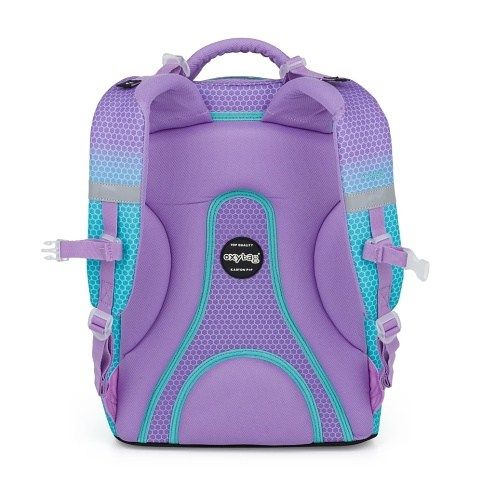 Školní batoh z řady OXY Ombre je ideální pro školáky od 3. třídy. Moderní design ve stylu ombre zaujme na první pohled. Anatomicky tvarovaný zádový panel, polstrované ramenní popruhy a nastavitelný hrudní popruh zajistí záda jako v bavlnce každému školákovi. Pevné dno zabraňuje převrhnutí samostatně stojícího batohu. Batoh disponuje dvěma prostornými kapsami na všechny potřebné školní pomůcky. V bočních postranních kapsách na gumu je prostor pro láhev na pití, která je snadno dostupná pro doplnění pitného režimu každého školáka. Do přední kapsičky se snadno schová menší svačina. Nechybí řada reflexních prvků. Batoh je vhodný pro děti vysoké od 136 cm. Nosnost: 8 kg. Objem: 28 l.