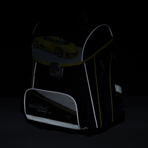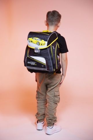 Školní aktovka z řady Premium s motivem auta je anatomicky tvarovaná a zajišťuje tak správné usazení na zádech. Vyztužená záda a vnitřní výztuha udržují stálý tvar batohu. Polstrování je z příjemného prodyšného materiálu, široké měkčené popruhy jsou navrženy tak, aby dokonale přilnuly a rovnoměrně zatížily ramena dítěte. Aktovka se skládá z jedné prostorné komory, kam se pohodlně vejdou všechny školní pomůcky pro děti v 1. a ve 2. třídě. Dno batohu je z pevného materiálu, chrání tím obsah před převržením a vysypáním. Zapínání je na bezpečnostní přezku. Přední kapsička je určena na svačinu, nechybí řada reflexních prvků, díky kterým je aktovka viditelnější.