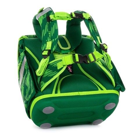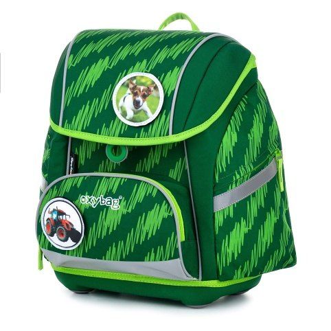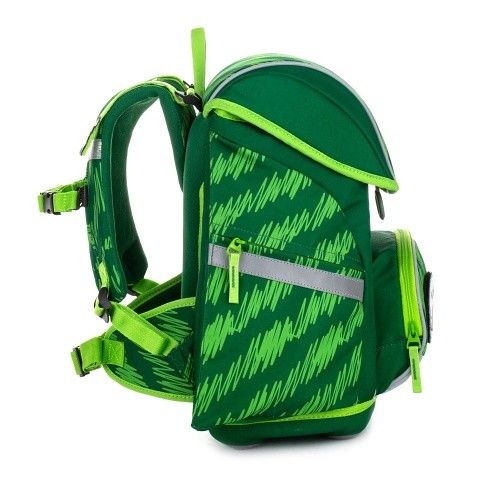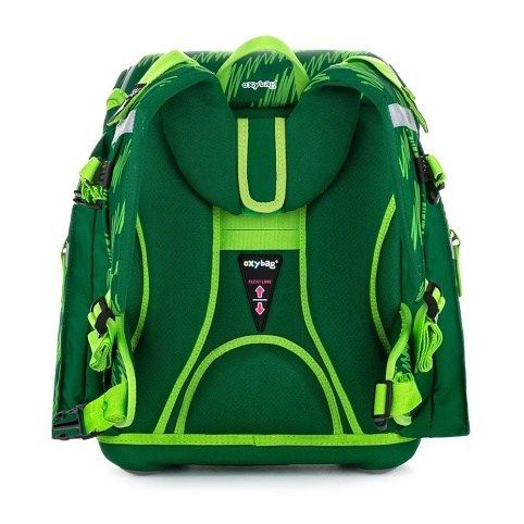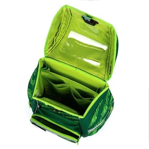 Školní aktovka řady Premium FLEXI v zeleném provedení je určená pro žáky 1. a 2. třídy, vyznačuje se jedinečným systémem FLEXI LINE, díky kterému jsou záda aktovky nastavitelné přesně podle výšky dítěte. Anatomicky tvarovaná polstrovaná záda společně s ramenními a hrudními popruhy zajišťují správné usazení a pohodlné nošení aktovky. Aktovka se skládá z jedné prostorné komory s vnitřním rozřaďovačem rozdělující vnitřní prostor aktovky. Na bocích jsou dvě kapsy na zip vhodné k ukládání lahve na pití, v přední části aktovky je menší kapsička na svačinu. Nechybí řada reflexních prvků, samozřejmostí je certifikace státní zkušebnou.