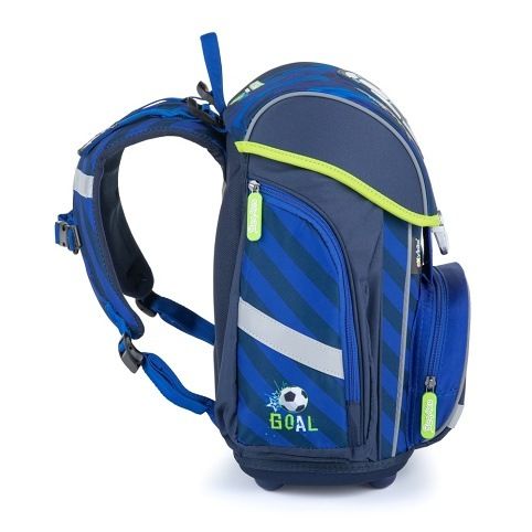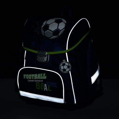 Školní aktovka z řady Premium s motivem fotbalu je anatomicky tvarovaná a zajišťuje tak správné usazení na zádech. Vyztužená záda a vnitřní výztuha udržují stálý tvar batohu. Polstrování je z příjemného prodyšného materiálu, široké měkčené popruhy jsou navrženy tak, aby dokonale přilnuly a rovnoměrně zatížily ramena dítěte. Aktovka se skládá z jedné prostorné komory, kam se pohodlně vejdou všechny školní pomůcky pro děti v 1. a ve 2. třídě. Dno batohu je z pevného materiálu, chrání tím obsah před převržením a vysypáním. Zapínání je na bezpečnostní přezku. Přední kapsička je určena na svačinu, nechybí řada reflexních prvků, díky kterým je aktovka viditelnější.