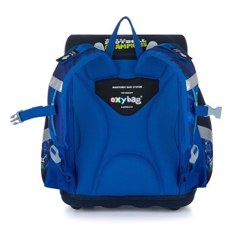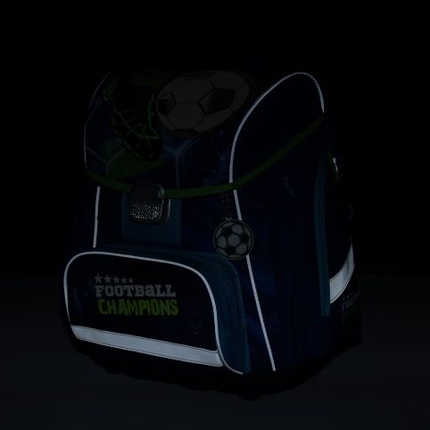 Školní aktovka z řady Premium s motivem fotbalu je anatomicky tvarovaná a zajišťuje tak správné usazení na zádech. Vyztužená záda a vnitřní výztuha udržují stálý tvar batohu. Polstrování je z příjemného prodyšného materiálu, široké měkčené popruhy jsou navrženy tak, aby dokonale přilnuly a rovnoměrně zatížily ramena dítěte. Aktovka se skládá z jedné prostorné komory, kam se pohodlně vejdou všechny školní pomůcky pro děti v 1. a ve 2. třídě. Dno batohu je z pevného materiálu, chrání tím obsah před převržením a vysypáním. Zapínání je na bezpečnostní přezku. Přední kapsička je určena na svačinu, nechybí řada reflexních prvků, díky kterým je aktovka viditelnější.