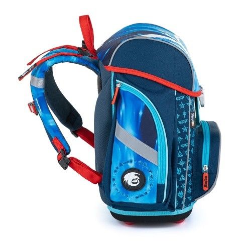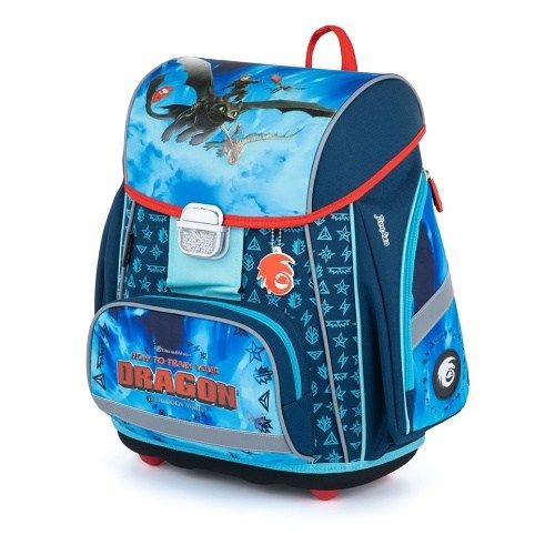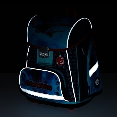 Školní aktovka z řady Premium s motivem Jak vycvičit draka je anatomicky tvarovaná a zajišťuje tak správné usazení na zádech. Vyztužená záda a vnitřní výztuha udržují stálý tvar batohu. Polstrování je z příjemného prodyšného materiálu, široké měkčené popruhy jsou navrženy tak, aby dokonale přilnuly a rovnoměrně zatížily ramena dítěte. Aktovka se skládá z jedné prostorné komory, kam se pohodlně vejdou všechny školní pomůcky pro děti v 1. a ve 2. třídě. Dno batohu je z pevného materiálu, chrání tím obsah před převržením a vysypáním. Zapínání je na bezpečnostní přezku. Přední kapsička je určena na svačinu, nechybí řada reflexních prvků, díky kterým je aktovka viditelnější.