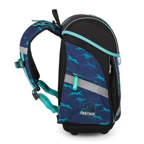 Školní batoh řady Premium Light s motivem pantera nabízí kvalitu, prostor na školní potřeby i odlehčenou konstrukci pro pohodlnější nošení. Díky odlehčenému materiálu váží batoh pouhých 900 g. Polstrování je z příjemného prodyšného materiálu, široké měkčené popruhy jsou navrženy tak, aby dokonale přilnuly a rovnoměrně zatížily ramena dítěte. Pro pohodlnější nošení je batoh dále vybaven přitažnými a hrudními popruhy. Batohy ocení především ti nejmladší školáci s výškou od 121 cm. Nechybí ani praktické reflexní prvky, vnitřní rozřaďovač i velké množství kapes.