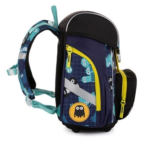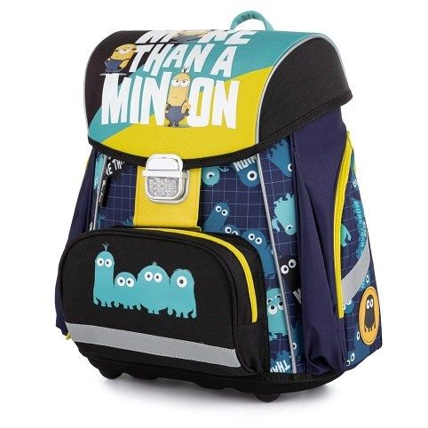 Školní aktovka z řady Premium s motivem Mimoňů je anatomicky tvarovaná a zajišťuje tak správné usazení na zádech. Vyztužená záda a vnitřní výztuha udržují stálý tvar batohu. Polstrování je z příjemného prodyšného materiálu, široké měkčené popruhy jsou navrženy tak, aby dokonale přilnuly a rovnoměrně zatížily ramena dítěte. Aktovka se skládá z jedné prostorné komory, kam se pohodlně vejdou všechny školní pomůcky pro děti v 1. a ve 2. třídě. Dno batohu je z pevného materiálu, chrání tím obsah před převržením a vysypáním. Zapínání je na bezpečnostní přezku. Přední kapsička je určena na svačinu, nechybí řada reflexních prvků, díky kterým je aktovka viditelnější.