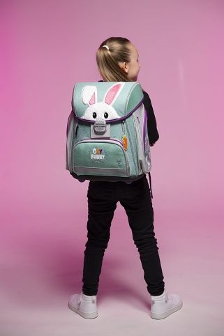 Školní aktovka z řady Premium s motivem králíčka je anatomicky tvarovaná a zajišťuje tak správné usazení na zádech. Vyztužená záda a vnitřní výztuha udržují stálý tvar batohu. Polstrování je z příjemného prodyšného materiálu, široké měkčené popruhy jsou navrženy tak, aby dokonale přilnuly a rovnoměrně zatížily ramena dítěte. Aktovka se skládá z jedné prostorné komory, kam se pohodlně vejdou všechny školní pomůcky pro děti v 1. a ve 2. třídě. Dno batohu je z pevného materiálu, chrání tím obsah před převržením a vysypáním. Zapínání je na bezpečnostní přezku. Přední kapsička je určena na svačinu, nechybí řada reflexních prvků, díky kterým je aktovka viditelnější.