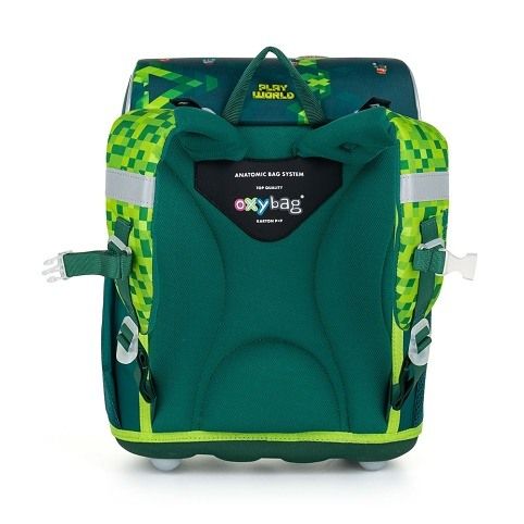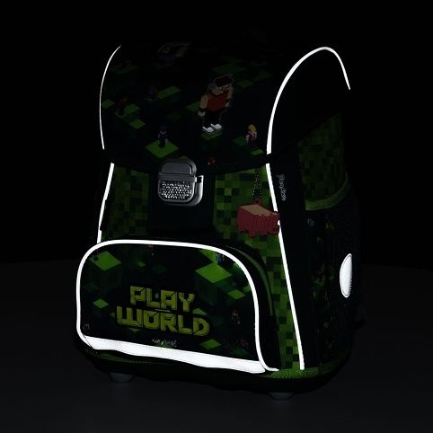 Školní aktovka z řady Premium s motivem Playworld je anatomicky tvarovaná a zajišťuje tak správné usazení na zádech. Vyztužená záda a vnitřní výztuha udržují stálý tvar batohu. Polstrování je z příjemného prodyšného materiálu, široké měkčené popruhy jsou navrženy tak, aby dokonale přilnuly a rovnoměrně zatížily ramena dítěte. Aktovka se skládá z jedné prostorné komory, kam se pohodlně vejdou všechny školní pomůcky pro děti v 1. a ve 2. třídě. Dno batohu je z pevného materiálu, chrání tím obsah před převržením a vysypáním. Zapínání je na bezpečnostní přezku. Přední kapsička je určena na svačinu, nechybí řada reflexních prvků, díky kterým je aktovka viditelnější.