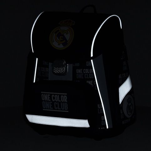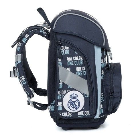 Školní aktovka z řady Premium s motivem sportovního klubu Real Madrid je anatomicky tvarovaná a zajišťuje tak správné usazení na zádech. Vyztužená záda a vnitřní výztuha udržují stálý tvar batohu. Polstrování je z příjemného prodyšného materiálu, široké měkčené popruhy jsou navrženy tak, aby dokonale přilnuly a rovnoměrně zatížily ramena dítěte. Aktovka se skládá z jedné prostorné komory, kam se pohodlně vejdou všechny školní pomůcky pro děti v 1. a ve 2. třídě. Dno batohu je z pevného materiálu, chrání tím obsah před převržením a vysypáním. Zapínání je na bezpečnostní přezku. Přední kapsička je určena na svačinu, nechybí řada reflexních prvků, díky kterým je aktovka viditelnější.