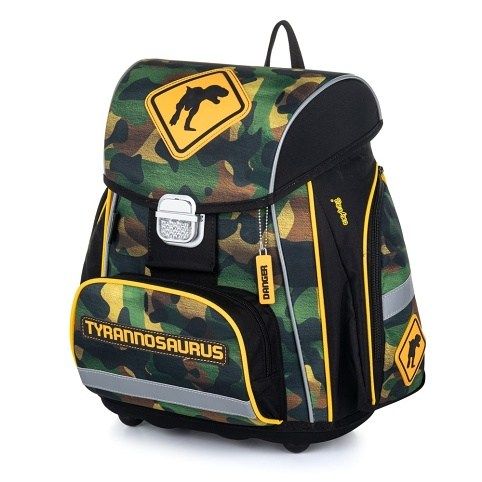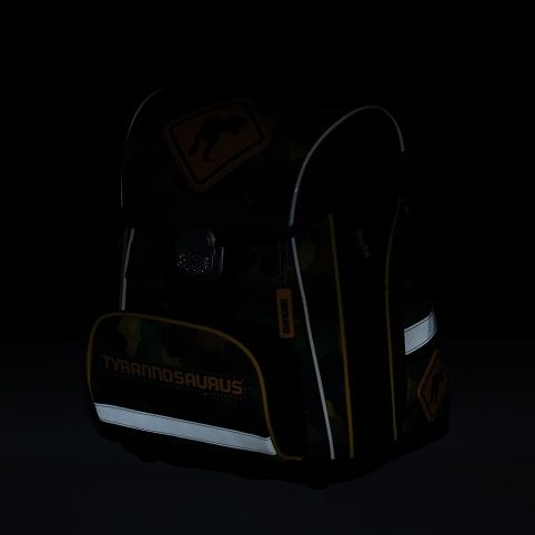 Školní aktovka z řady Premium s motivem dinosaura je anatomicky tvarovaná a zajišťuje tak správné usazení na zádech. Vyztužená záda a vnitřní výztuha udržují stálý tvar batohu. Polstrování je z příjemného prodyšného materiálu, široké měkčené popruhy jsou navrženy tak, aby dokonale přilnuly a rovnoměrně zatížily ramena dítěte. Aktovka se skládá z jedné prostorné komory, kam se pohodlně vejdou všechny školní pomůcky pro děti v 1. a ve 2. třídě. Dno batohu je z pevného materiálu, chrání tím obsah před převržením a vysypáním. Zapínání je na bezpečnostní přezku. Přední kapsička je určena na svačinu, nechybí řada reflexních prvků, díky kterým je aktovka viditelnější.