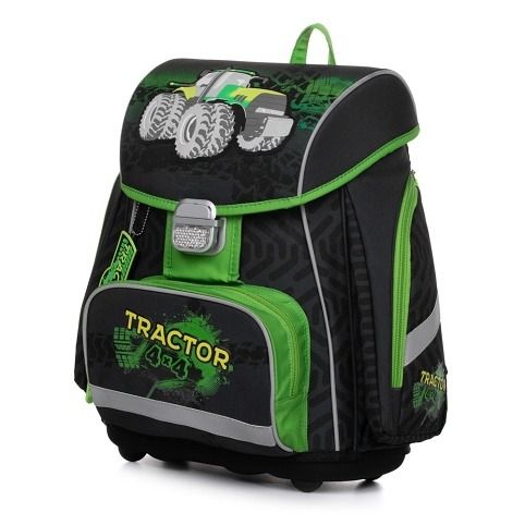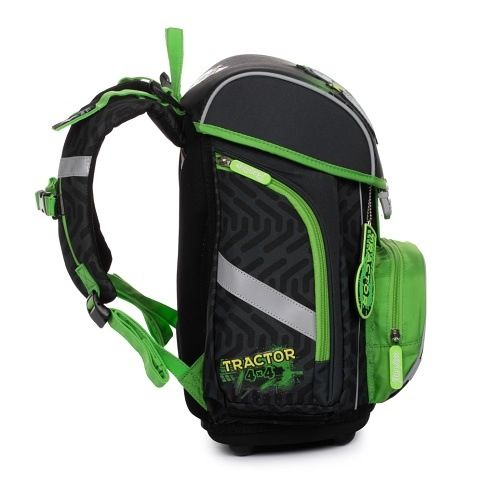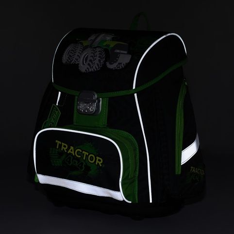 Školní aktovka z řady Premium s motivem traktoru je anatomicky tvarovaná a zajišťuje tak správné usazení na zádech. Vyztužená záda a vnitřní výztuha udržují stálý tvar batohu. Polstrování je z příjemného prodyšného materiálu, široké měkčené popruhy jsou navrženy tak, aby dokonale přilnuly a rovnoměrně zatížily ramena dítěte. Aktovka se skládá z jedné prostorné komory, kam se pohodlně vejdou všechny školní pomůcky pro děti v 1. a ve 2. třídě. Dno batohu je z pevného materiálu, chrání tím obsah před převržením a vysypáním. Zapínání je na bezpečnostní přezku. Přední kapsička je určena na svačinu, nechybí řada reflexních prvků, díky kterým je aktovka viditelnější.