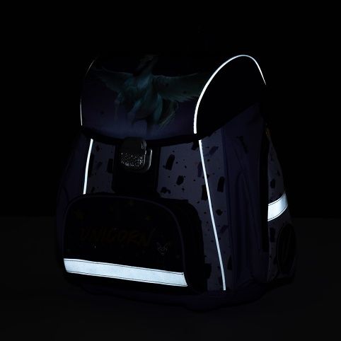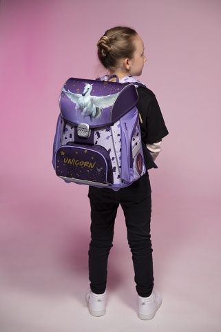 Školní aktovka z řady Premium s motivem pegase je anatomicky tvarovaná a zajišťuje tak správné usazení na zádech. Vyztužená záda a vnitřní výztuha udržují stálý tvar batohu. Polstrování je z příjemného prodyšného materiálu, široké měkčené popruhy jsou navrženy tak, aby dokonale přilnuly a rovnoměrně zatížily ramena dítěte. Aktovka se skládá z jedné prostorné komory, kam se pohodlně vejdou všechny školní pomůcky pro děti v 1. a ve 2. třídě. Dno batohu je z pevného materiálu, chrání tím obsah před převržením a vysypáním. Zapínání je na bezpečnostní přezku. Přední kapsička je určena na svačinu, nechybí řada reflexních prvků, díky kterým je aktovka viditelnější.