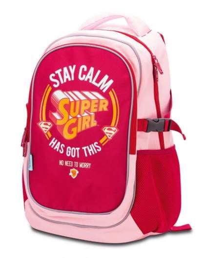 Studentský batoh v růžovo - vínovém provedení s logem SUPERGIRL na přední části, pro žáky 2. stupně ZŠ.