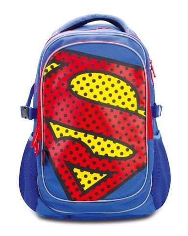 Školní batoh s výrazným logem SUPERMAN na přední části, vhodný od 3. třídy 1. stupně ZŠ a také pro 2. stupeň ZŠ.