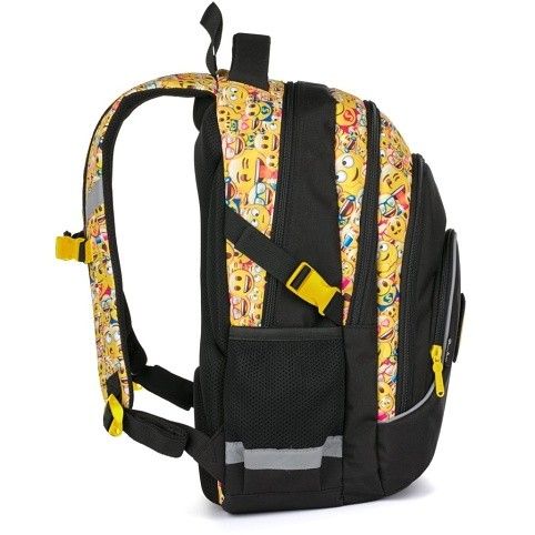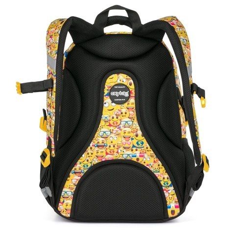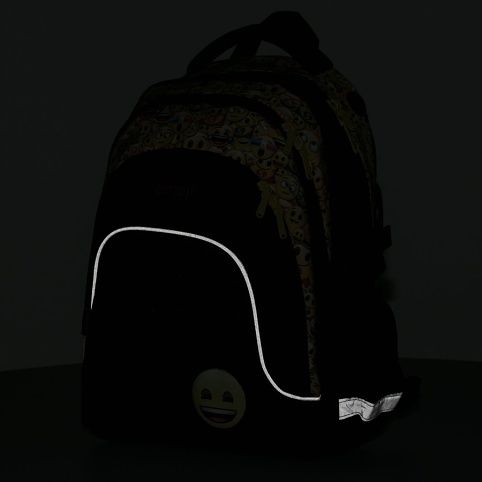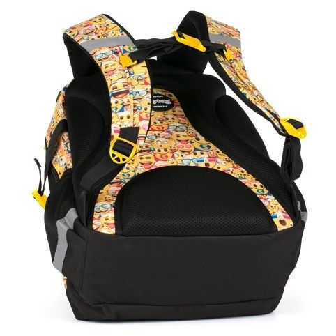 Scooler Emoji je tříkomorový batoh pro žáky i studenty s boční kapsou na láhev, organizérem, vnitřní malou kapsou a disponuje také kapsou na notebook do velikosti 15''. Nastavitelné ramenní popruhy i hrudní popruh společně s anatomicky tvarovaným prodyšným zádovým systémem přinášejí maximální pohodlí při nošení. Samozřejmě nechybí reflexní prvky.