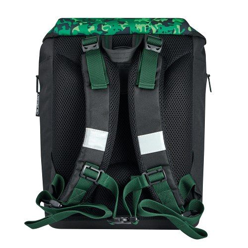 38x28x23 cm. Ergonomicky tvarované a prodyšné zadní polstrování, Duální nastavitelné ramenní popruhy, výškově nastavitelný hrudní pás, Reflexní materiál Oralite, Magnetický uzávěr FidLock, Impregnace odpuzující vodu, Stabilní deska s plastovými nožičkami, 2 výměnné motivy se suchým zipem, Rukojeť. 1 prostorná vnitřní přihrádka s odděleným prostorem pro knihy, 2 boční kapsy se zapínáním na zip.