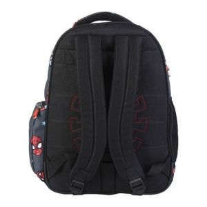 Školní batoh Spiderman s pevnými zády a nastavitelnými popruhy, dvěma komorami, přední a boční kapsou na zip. Rozměr 32×42×15 cm. Materiál 100% polyester.