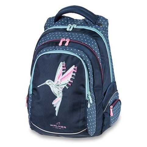 Školní batoh Magic Colibri z řady Walker Fame má polstrovaná záda s odvětrávacími kanálky, výškově nastavitelné popruhy, 3 komory s dalším funkčním členěním a zdvojené boční kapsy. Rozměr: 32 x 44 x 24 cm, objem: 32 l, hmotnost: cca 960 g