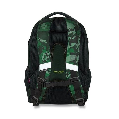 Školní batoh Uni Camo Green z řady Walker Fame s reflexními prvky. Batoh má polstrovaná záda s odvětráváním, anatomicky tvarované a výškově nastavitelné polstrované kompresní ramenní popruhy s nastavitelným hrudním popruhem. Konstrukce zad je s prodlouženým polstrováním a prodlouženou dolní pevnou konstrukcí pro lepší stabilitu. Na batohu jsou reflexní prvky pro bezpečnost školáka. 3 komory a další funkční členění. Rozměr: 30 x 44 x 20 cm, objem: 28 l, hmotnost: cca 870 g