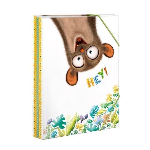 Školní deska A4 Hey! na sešity a jiné dokumenty. Deska je z tvrdého papírového materiálu s PUV lakováním, vnitřním potiskem a rozvrhem hodin. Deska má gumičky v horní a dolní části, které brání samovolnému otevření. Školní deska chrání sešity před poškozením a navíc, vaše dítě bude mít všechny sešity pohromadě.