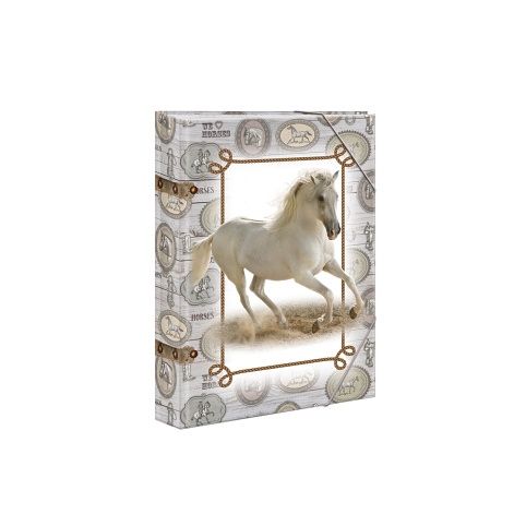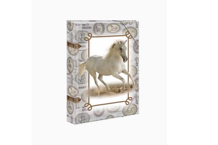 Školní deska A5 Horses na sešity a jiné dokumenty. Deska je z tvrdého papírového materiálu s PUV lakováním, vnitřním potiskem a rozvrhem hodin. Deska má gumičky v horní a dolní části, které brání samovolnému otevření. Školní deska chrání sešity před poškozením a navíc, vaše dítě bude mít všechny sešity pohromadě.