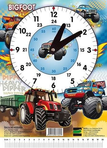 Školní hodiny slouží k výuce času prvňáčkům základních škol. Ve spodní části hodin je pravítko, které se může odstřihnout a používat samostatně.