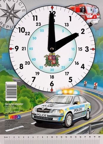 Školní hodiny slouží k výuce času prvňáčkům základních škol. Ve spodní části hodin je pravítko, které se může odstřihnout a používat samostatně.