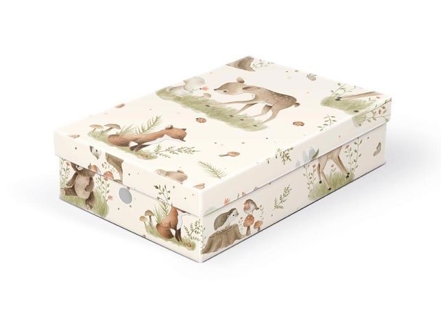 Školní krabice z kartonu, s motivem lesních zvířátek. Vhodná na ukládání nezbytných pomůcek na výtvarnou výchovu nebo jiných školních potřeb. Do krabice se vejde formát A4. Materiál: karton Motiv: lesní zvířátka Rozměr: 330 x 225 x 80 mm Uvedená cena je za 1 ks.