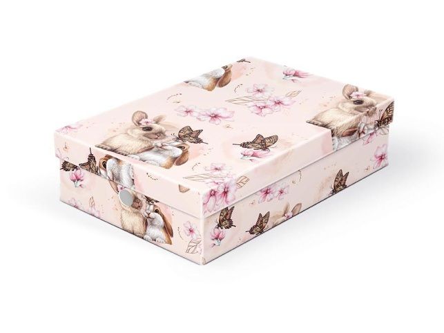 Školní krabice z kartonu, s motivem králíčků. Vhodná na ukládání nezbytných pomůcek na výtvarnou výchovu nebo jiných školních potřeb. Do krabice se vejde formát A4. Motiv: králíčci Materiál: karton Rozměr: 330 x 225 x 80 mm Uvedená cena je za 1 ks.