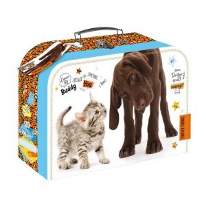 Papírový dětský kufřík velikosti 35cm Forever friends. Kufřík je vyroben z kvalitního pevného kartonu s vnitřní potiskem a kovovým uzavíráním s rukojetí. Je vhodný na školní potřeby, výtvarné potřeby, do kterého vejde i blok barevných papírů A4. Jeho využití v dětském světě je velké, možnost uložení hraček ale i jiných drobností na cestu k babičce.