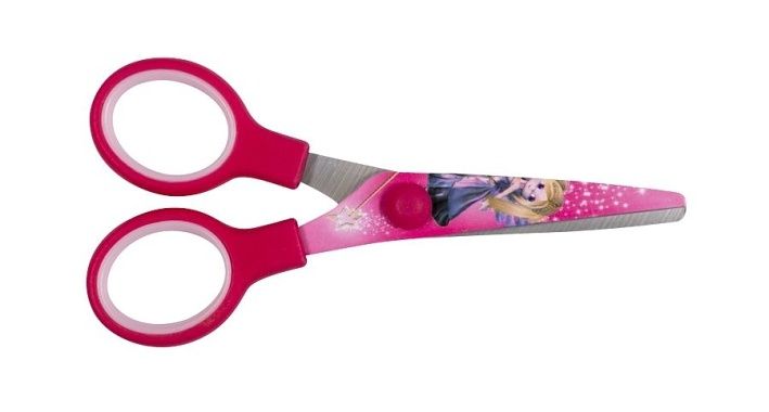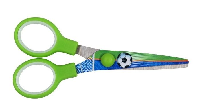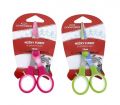 Školní nůžky o délce 13cm s barevným potiskem v růžové a zelené barvě. Široký úchop pro pohodlné držení. Baleno na blistru.