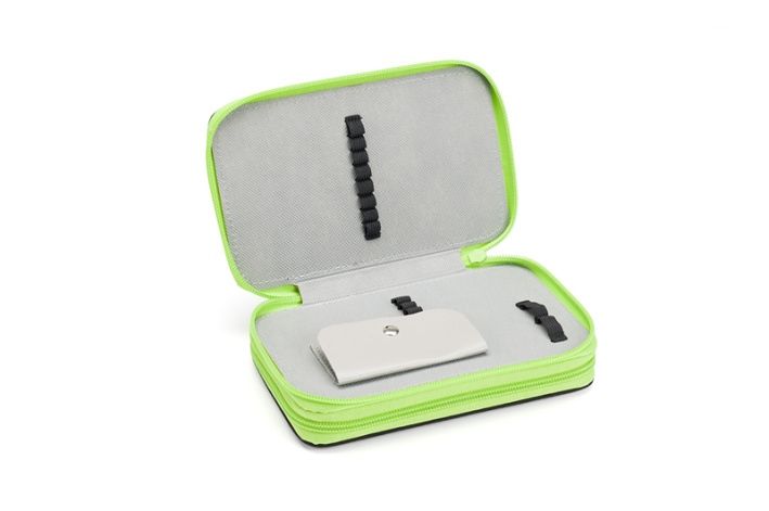 Dvoupatrové penály obsahují v prvním patře 8 gumiček na pastelky, 2 gumičky na tužky a jednu větší na pero, dále gumičky na ořezávátko a gumu a kapsičku na drobnosti, uzavíratelnou na patent. Ve druhém patře penálu je umístěna průhledná kapsička na rozvrh a tajné dokumenty a 9 pevných gumiček na psací potřeby různých velikostí. Dokonale barevně sladěný design s aktovkou či batohem je samozřejmostí.