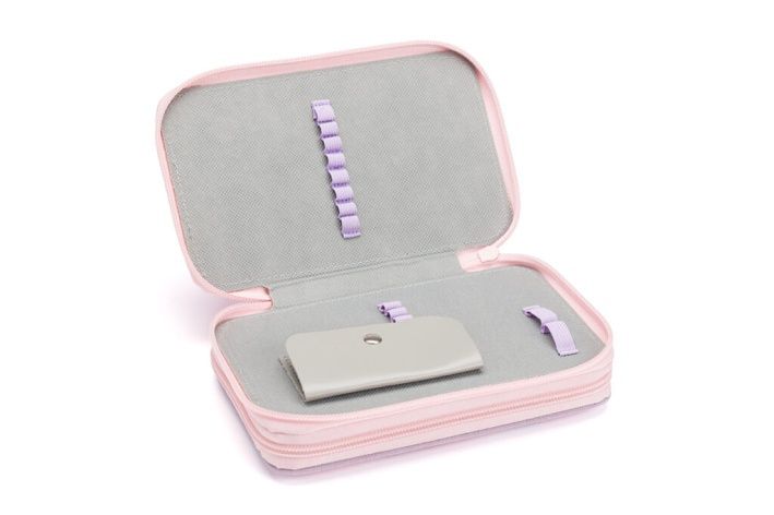 Dvoupatrové penály obsahují v prvním patře 8 gumiček na pastelky, 2 gumičky na tužky a jednu větší na pero, dále gumičky na ořezávátko a gumu a kapsičku na drobnosti, uzavíratelnou na patent. Ve druhém patře penálu je umístěna průhledná kapsička na rozvrh a tajné dokumenty a 9 pevných gumiček na psací potřeby různých velikostí. Dokonale barevně sladěný design s aktovkou či batohem je samozřejmostí.