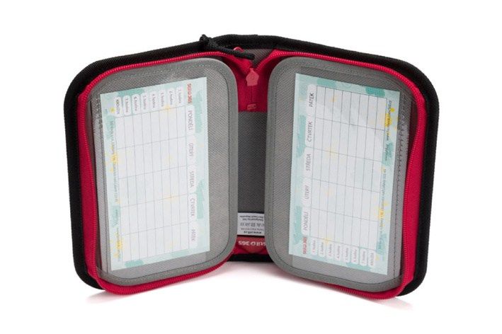 Jednopatrové penály mají velkou kapacitu k umístění psacích potřeb. 23 pevných gumiček různých velikostí k pohodlnému uložení větších pastelek nebo psacího pera, pravítka, ořezávátka a gumy. Vnitřní dvě chlopně mají na vnější straně průhlednou kapsičku na rozvrh či jiné malé dokumenty. Na vnitřní straně je kapsička na drobnosti, uzavíratelná patentem. Novinka: zipy jednopatrových penálů jsme letos vylepšili šňůrkou na jezdci zipu, který usnadní dětským prstům otevírání a zavírání penálu. Dokonale barevně sladěný design s aktovkou či batohem je samozřejmostí.