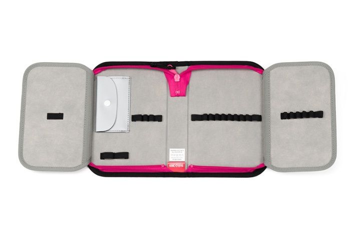 Jednopatrové penály mají velkou kapacitu k umístění psacích potřeb. 23 pevných gumiček různých velikostí k pohodlnému uložení větších pastelek nebo psacího pera, pravítka, ořezávátka a gumy. Vnitřní dvě chlopně mají na vnější straně průhlednou kapsičku na rozvrh či jiné malé dokumenty. Na vnitřní straně je kapsička na drobnosti, uzavíratelná patentem. Dokonale barevně sladěný design s aktovkou či batohem je samozřejmostí.