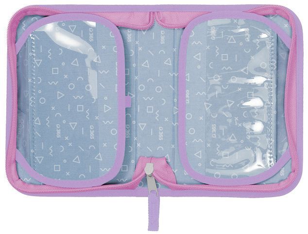 Chlopně mají na vnější straně průhlednou kapsičku na rozvrh či jiné malé dokumenty, na vnitřní straně je pak nová síťovaná kapsička pro uložení drobností. Dokonale barevně sladěný design s aktovkou či batohem je samozřejmostí.