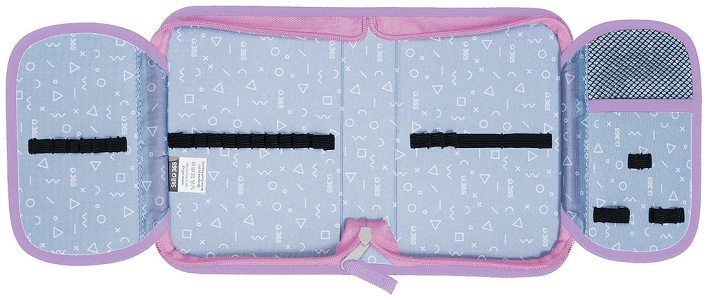 Přesně 24 pevných gumiček různých velikostí slouží k pohodlnému uložení pastelek, psacího pera, tužek, pravítka, ořezávátka a gumy.