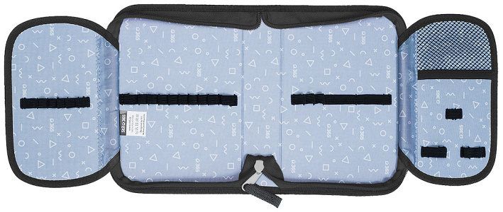 Chlopně mají na vnější straně průhlednou kapsičku na rozvrh či jiné malé dokumenty, na vnitřní straně je pak nová síťovaná kapsička pro uložení drobností. Dokonale barevně sladěný design s aktovkou či batohem je samozřejmostí.