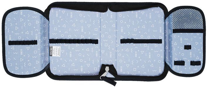 Chlopně mají na vnější straně průhlednou kapsičku na rozvrh či jiné malé dokumenty, na vnitřní straně je pak nová síťovaná kapsička pro uložení drobností. Dokonale barevně sladěný design s aktovkou či batohem je samozřejmostí.