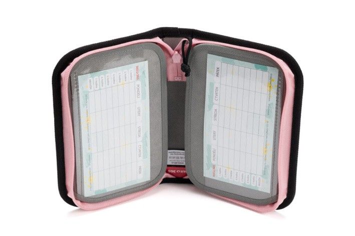 Jednopatrové penály mají velkou kapacitu k umístění psacích potřeb. 23 pevných gumiček různých velikostí k pohodlnému uložení větších pastelek nebo psacího pera, pravítka, ořezávátka a gumy. Vnitřní dvě chlopně mají na vnější straně průhlednou kapsičku na rozvrh či jiné malé dokumenty. Na vnitřní straně je kapsička na drobnosti, uzavíratelná patentem. Dokonale barevně sladěný design s aktovkou či batohem je samozřejmostí.