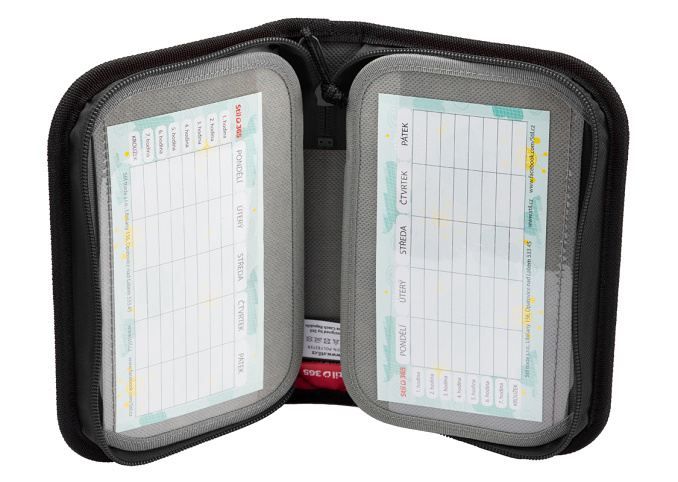 Jednopatrové penály mají velkou kapacitu k umístění psacích potřeb. 23 pevných gumiček různých velikostí k pohodlnému uložení větších pastelek nebo psacího pera, pravítka, ořezávátka a gumy. Vnitřní dvě chlopně mají na vnější straně průhlednou kapsičku na rozvrh či jiné malé dokumenty. Na vnitřní straně je kapsička na drobnosti, uzavíratelná patentem. Dokonale barevně sladěný design s aktovkou či batohem je samozřejmostí.